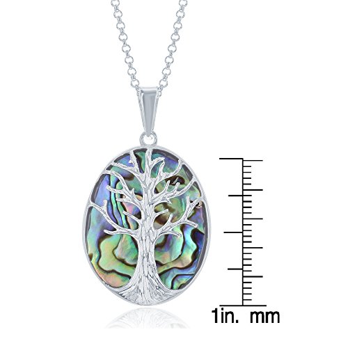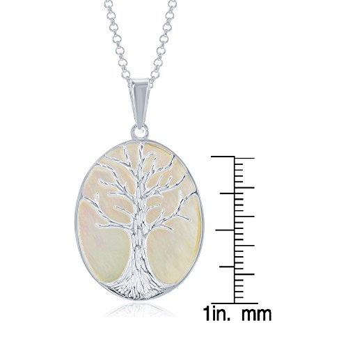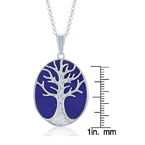 -. Title : Sterling Silver Natural Stone Tree of Life Oval Pendant with 18" Thick Chain