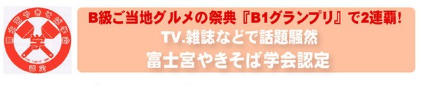B級ご当地グルメの祭典「B1グランプリ」で2連覇!TV雑誌などで話題騒然!病みつきになる弾力のもちもち麺!だし粉をかけるのが富士宮流!
