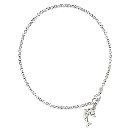 -. Title : Sterling Silver Dolphin Anklet 9 Inches