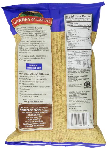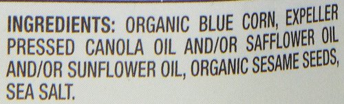 -. Feature : 7.5-ounce package of tortilla chips / Made with organic blue corn, sesame seeds, and a sP.R.Inkling of sea salt / Certified organic; no preservatives, hydrogenated oil, or genetically engineered ingredients / Crisp and sturdy chips perfect for dipping / Wholesome, all-natural snacks produced in the United States
