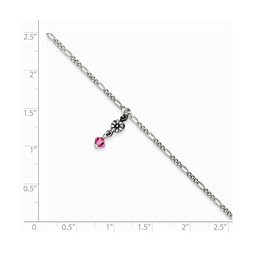 -. Title : 925 Sterling Silver 9inch Polished Antiqued Pink Crystal Beaded Anklet Bracelet -9" (9in x 2mm)