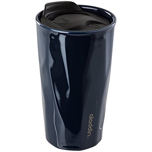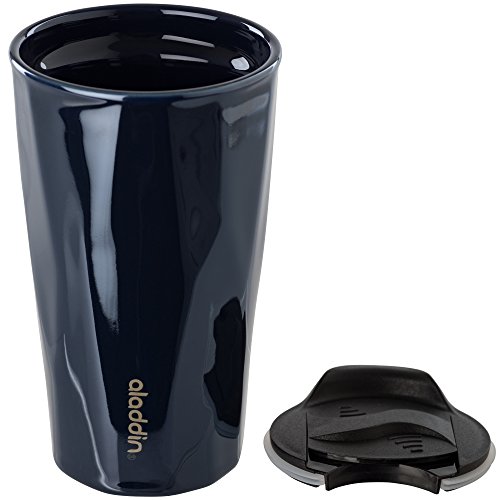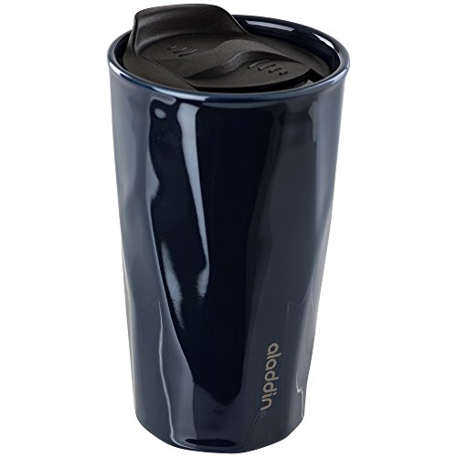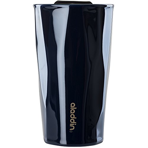 Product Description A multifaceted mug. Aladdin insulated ceramic mug's multifaceted surface and lustrous finish add sleek style on the go. Double wall insulated ceramic pulls double duty to ensure your Java stays toasty warm and has a clean taste with each Sip. Designed with a splash-resistant slider lid and car-cup friendly shape, even the roughest Road bumps won't splatter your morning pick-me-up. 0