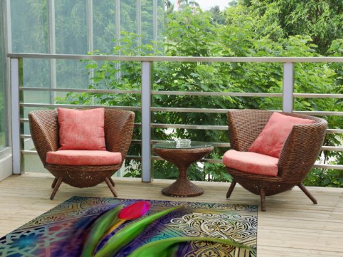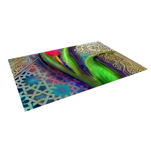 Kess InHouse S. Seema Z "Arabesque Tulip" Indoor/Outdoor Floor Mat, 4 by 5-Feet, Green and Gold