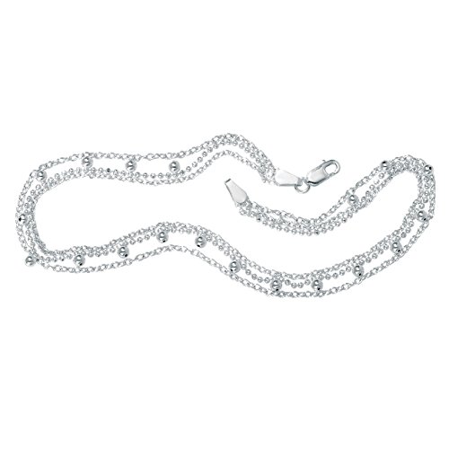 -. Title : .925 Sterling Silver Triple-Strand Beaded Ankle Bracelet 10"