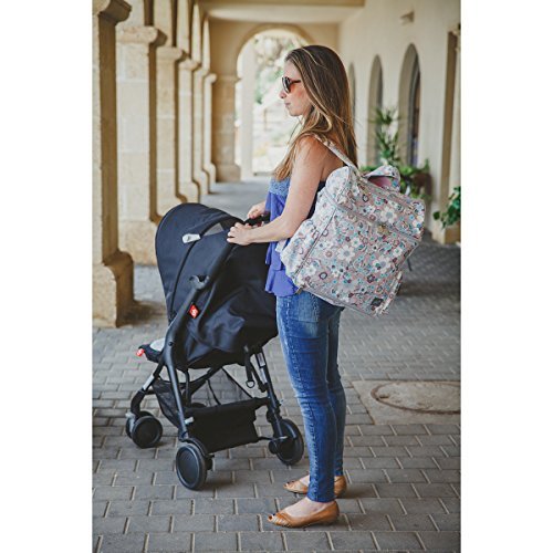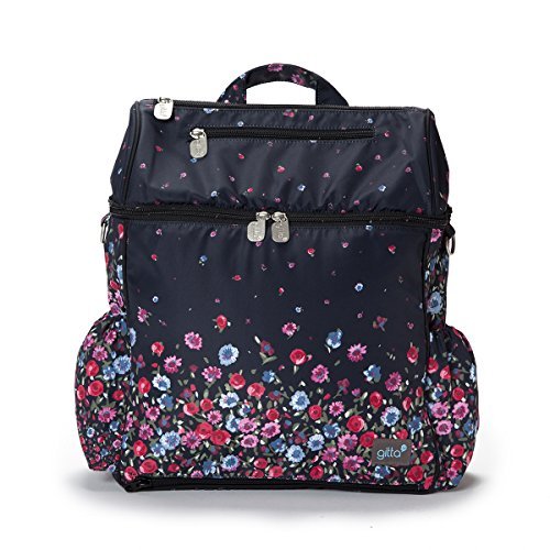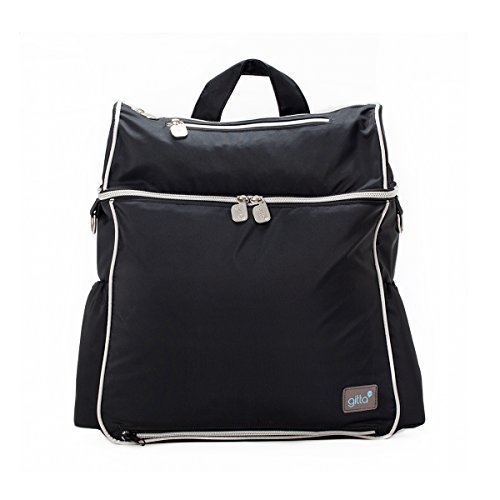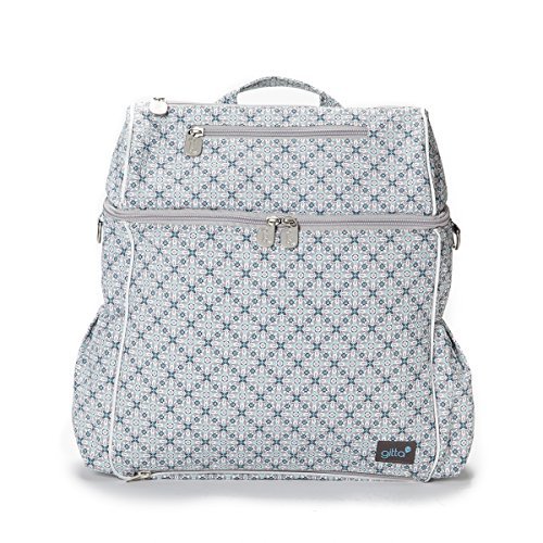 The GittaFor2 bag was created to help you organize and separate The innovative design, based on a study of parents needs, consists of an upper compartment for your own things, and an easily-accessible bottom compartment for babys things. Use it as a backpack or hang it on the carriage. Technofiber fabric that is pleasant to the touch, lightweight, durable, water-repellent, machine-washable and quick-drying. Main upper compartment with especially wide opening, and main bottom compartment. Clip for pacifier, keys, and more. Padded adjustable back straps. Easily accessible: may be hung high on all types of strollers. Two thermal compartments for bottles, with three insulated layers. Changing compartment at the front with wet wipes pocket for fast, convenient diaper changing, even when the bag is full. Easily-detachable, lightweight, liquid-repellent, padded changing mat. Diaper and baby clothes compartments. Cell phone compartment in front. Zippered mesh laundry bag. 21LT