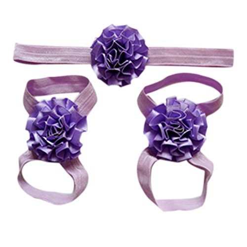 -. Title : Elevin(TM) Newborn Baby Soft Handmade Flowers Barefoot Sandals and Headdress Three Suit
