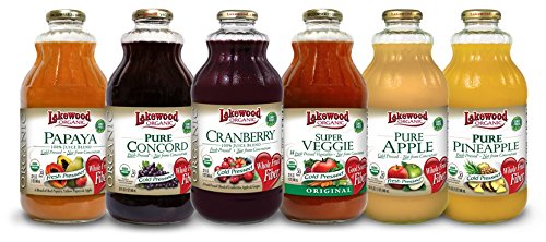 Variety includes lakewood's concord grape, papaya, cranberry blend, super veggie, pineapple and apple organic juice