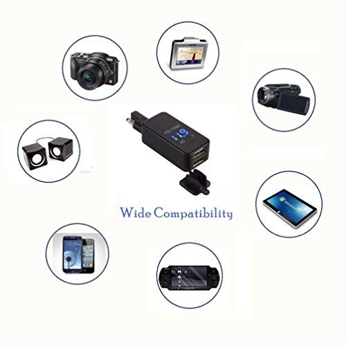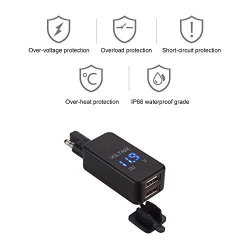 - POWERFUL CAPACITY: With dual USB plugs, output 5V/2.1A & 5V/2.1A. This motorcycle charger lets you charge any two smartphones or tablet devices simultaneously, at top speed.