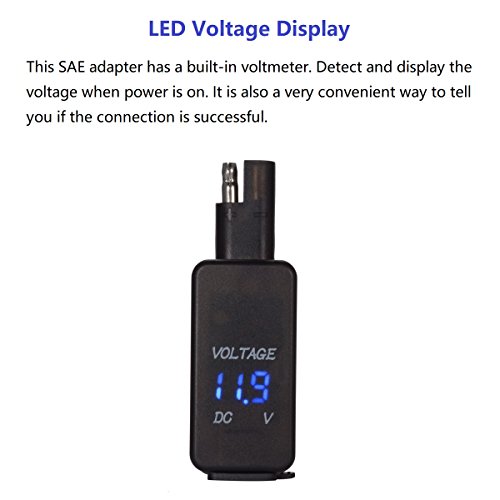 - LED VOLTAGE DISPLAY: This SAE adapter has a built-in voltmeter. Detect and display the voltage when power is on. It is also a very convenient way to tell you if the connection is successful.