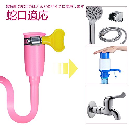 수도꼭지 적응:가정용 수도꼭지와의 고정은 호스 밴드를 사용하고, 가정용의 수도꼭지의 대부분의크기에 적응하 라고(면) 샤워 헤드에