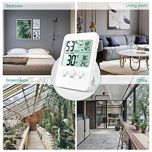 ORIA Digital Hygrometer Thermometer, Indoor Thermometer Humidity Monitor, Temperature Humidity Gauge Meter, with LCD Screen, MIN/MAX Records, ℃/℉ Switch, for Warehouse, Home, Car, Office, Greenhouse,