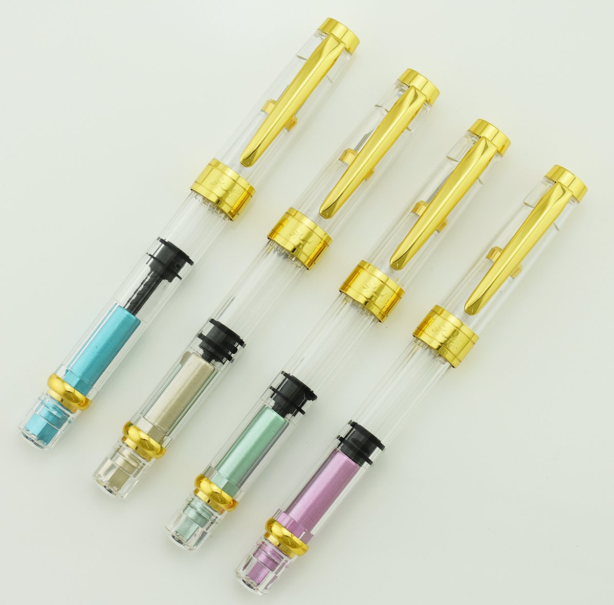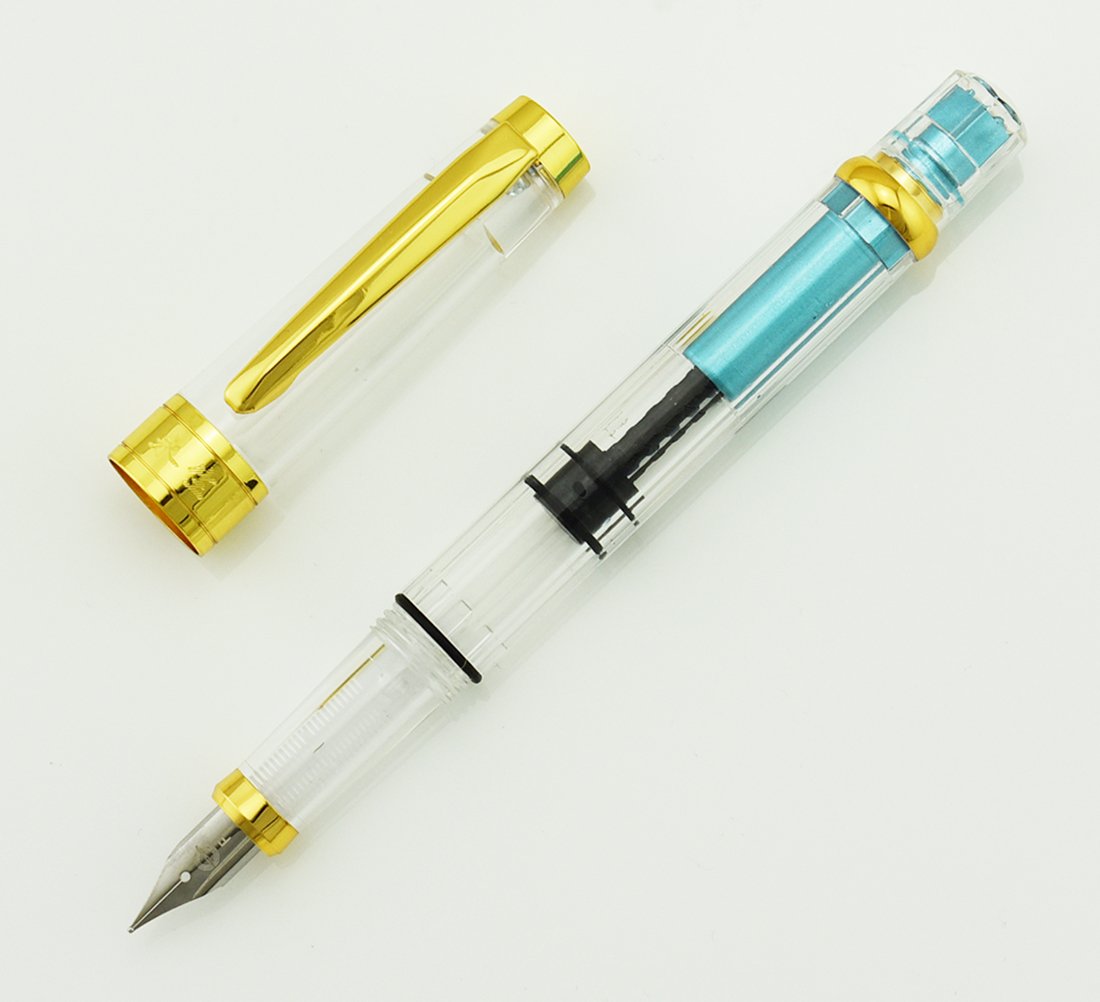 Shaft cap cap transparent recycled resin; fountain pen adopting rotary suction mechanism