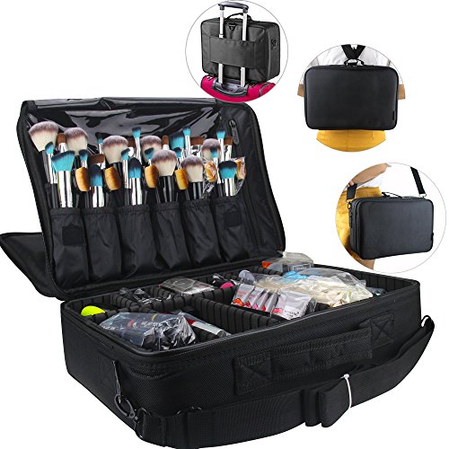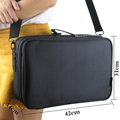 -. Title : travelmall 3 Schicht 41,9 x 31 x 14 cm Professionelle Make-up Zug Fall Kosmetik Organizer Make Up Artist Box Schulter verstellbar für Make-up-Pinsel Haar Stil, Nail Beauty Werkzeug für auf Trolley für Reisen