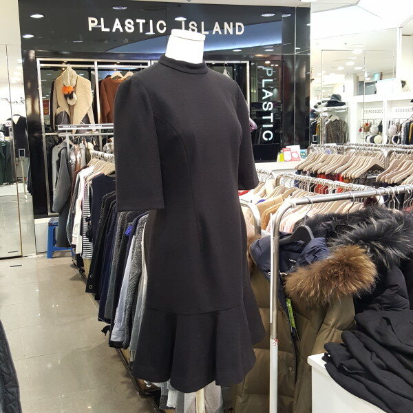 귀엽고 사랑스러운 핏의 모직 원피스입니다. 뒷태가 반전인 스타일로 모임많은 연말에 훌륭한 아이템이 되어줄 스타일입니다.총장 85cm