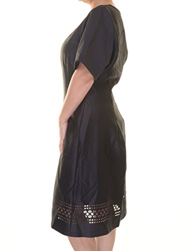 Product DescriptionShort sleeve V neck A-line dress with laser cut out at hem0