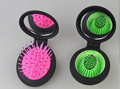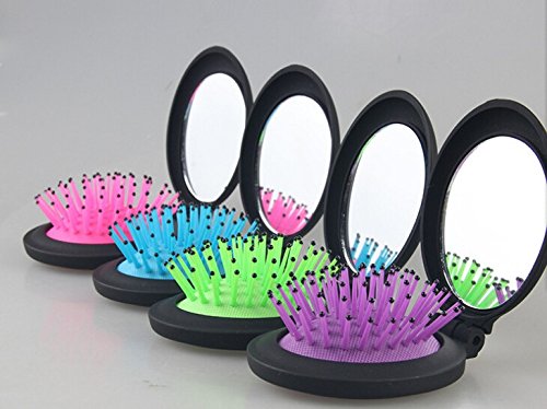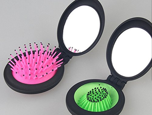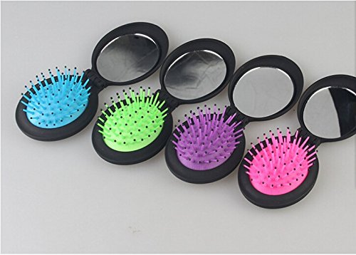 -. Title : Folding Travel Hair Comb with Mirror - Mini Pocket Hair Brush For Gift Idea