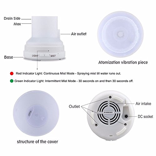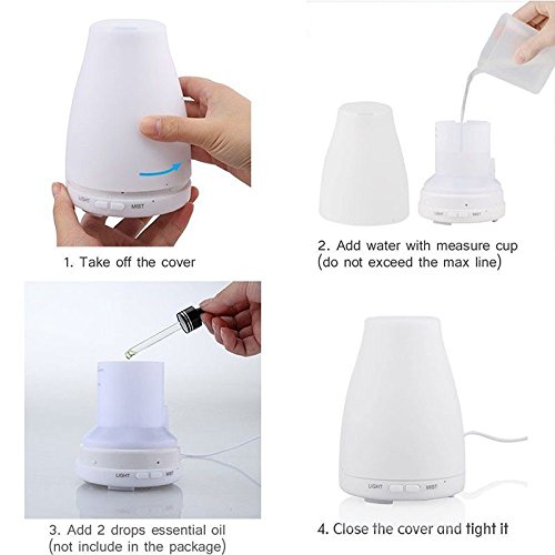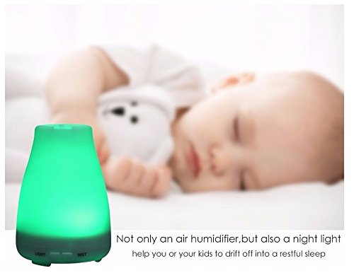 - it’s beautiful 7 Changing Lights option, each of which is adjustable between Bright or Dim modes, and could be set steady on or off make this diffuser a great night light for young children that are scared of the dark at night. Color includes: Green, Dark blue, Red, Yellow, Pink, Light blue, White.