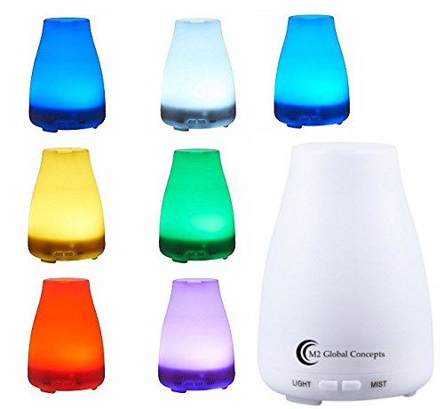 Ultrasonic Aromatherapy Essential Oil Diffuser (120ml) With Waterless Shutoff and 7 LED Changing Colors - by M2 Global Concepts