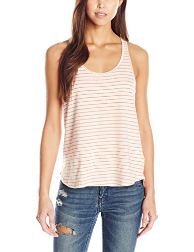 A cute striped racer back tank with a flattering shirt tail hem line from volcoms lived in collection.