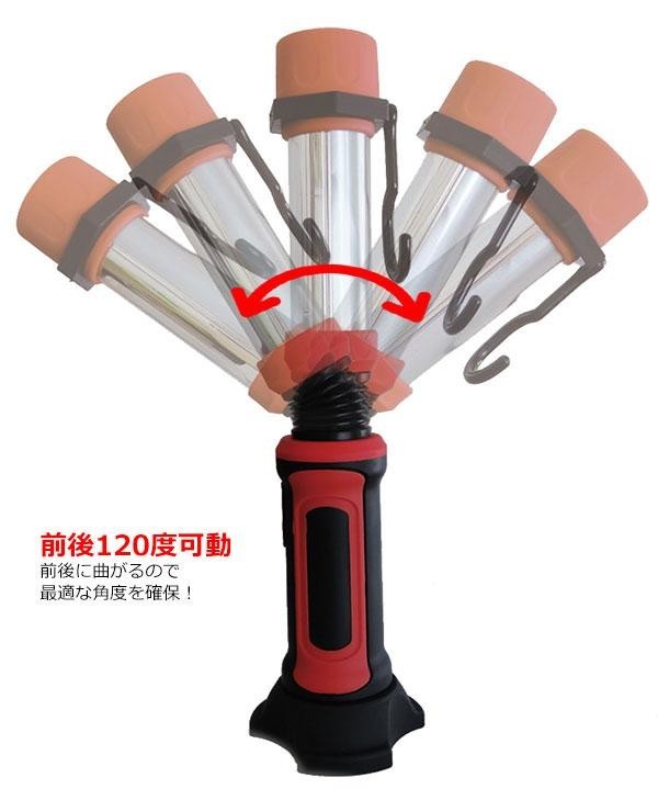 | 仕様 | 底部マグネット付 吊下げ360度回転フック付 前後120度可動 電源:単三アルカリ乾電池×4本(別売り) 連続点灯時間:約7時間 明るさ最大:200ルーメン |