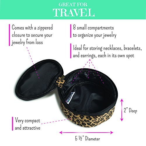 - GREAT FOR TRAVEL – This cute little jewelry travel organizer is very compact as well as attractive. This makes it great for travel, as well as an accessory to show off. Comes with a zippered closure to secure your jewelry from loss. Inside it holds 8 small compartments to organize your jewelry. Ideal for storing necklaces, bracelets, and earrings inside, each in its own spot.