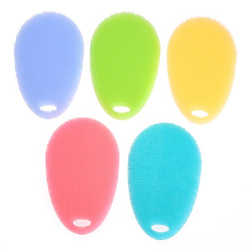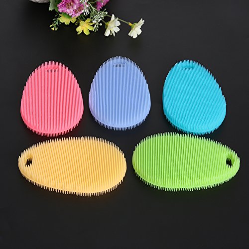 GiDiProtea Food-Grade Silicone Dish Sponge Antibacterial Non Stick Cleaning Brush Mildew-Free Fruit & Pan Washing Silicone Bathing Brush (5pack Multi-colors)