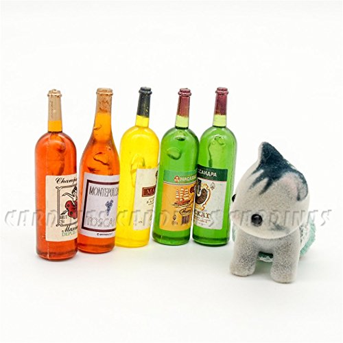 -. Title : Odoria 1:12 Miniature 5PCS Multicolor Wine Bottles Dollhouse Kitchen Accessories