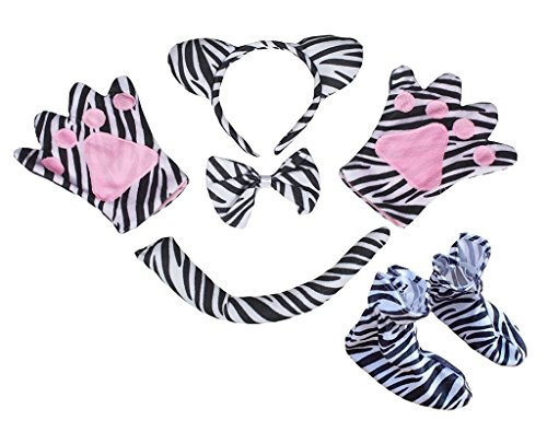 -. Feature : Product includes: a headband, a bow tie, a tail, pair of gloves, a pair of shoes. / Lightweight material. / By polyester and cotton. / Fixed size for unisex children. / 5pc costume for children.