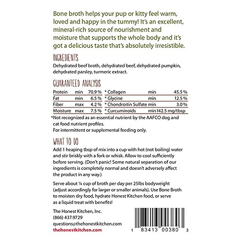 -. Title : The Honest Kitchen Beef Bone Broth: Natural Human Grade Functional Liquid Treat with Turmeric Spice for Dogs & Cats, 5 oz (pack of 2)