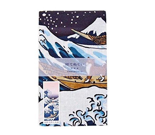 Hamamonyo Shiba Inu in Great Wave Kanagawa Chusen Tenugui Towel