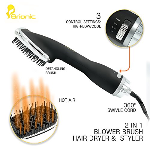 • QUIET, YET POWERFUL MOTOR! – The Brionic blow dryer brush comes with a powerful 1200 Watt motor which translates to 60% faster drying time for your hair. It’s also equipped with 2 motor speeds and a cool setting for your convenience.
