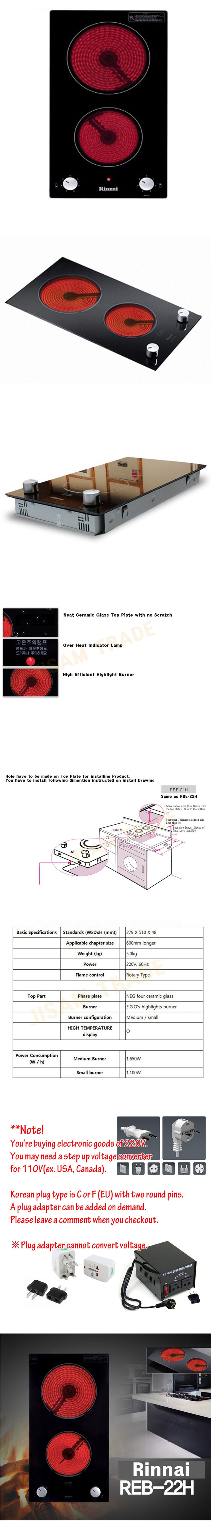 Rinnai RBE-22H Built-in Touch Hi-Light Range Electric Stove 220V