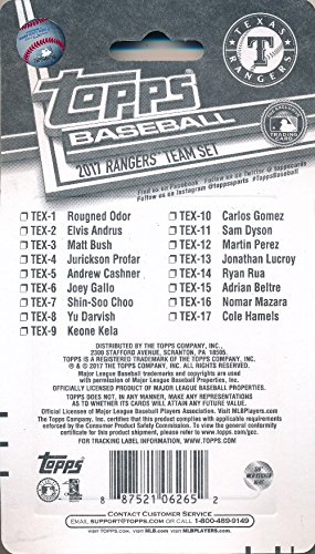 Texas Rangers 2017 Topps Baseball EXCLUSIVE Special Limited Edition 17 Card Complete Team Set with Rougned Odor, Yu Darvish, Adrian Beltre & More Stars & Rookies! Shipped in Bubble Mailer! WOWZZER!