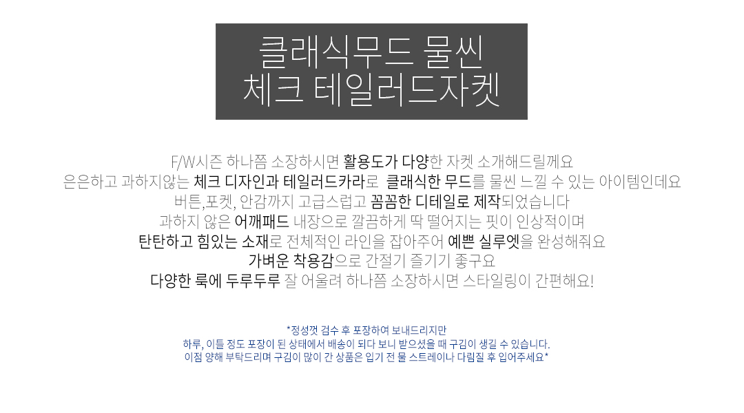 드라이세탁, 혹은 정해진 세탁법으로 세탁 후 착용하여 주시기 바랍니다