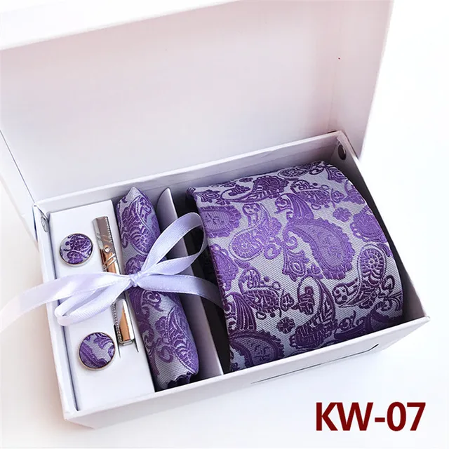 | [해외]SCST 브랜드 페이즐리 인쇄 노란색 실크 넥타이 일치 포켓 광장 커프스 넥타이 클립 선물 상자 4 개 세트 A077 |