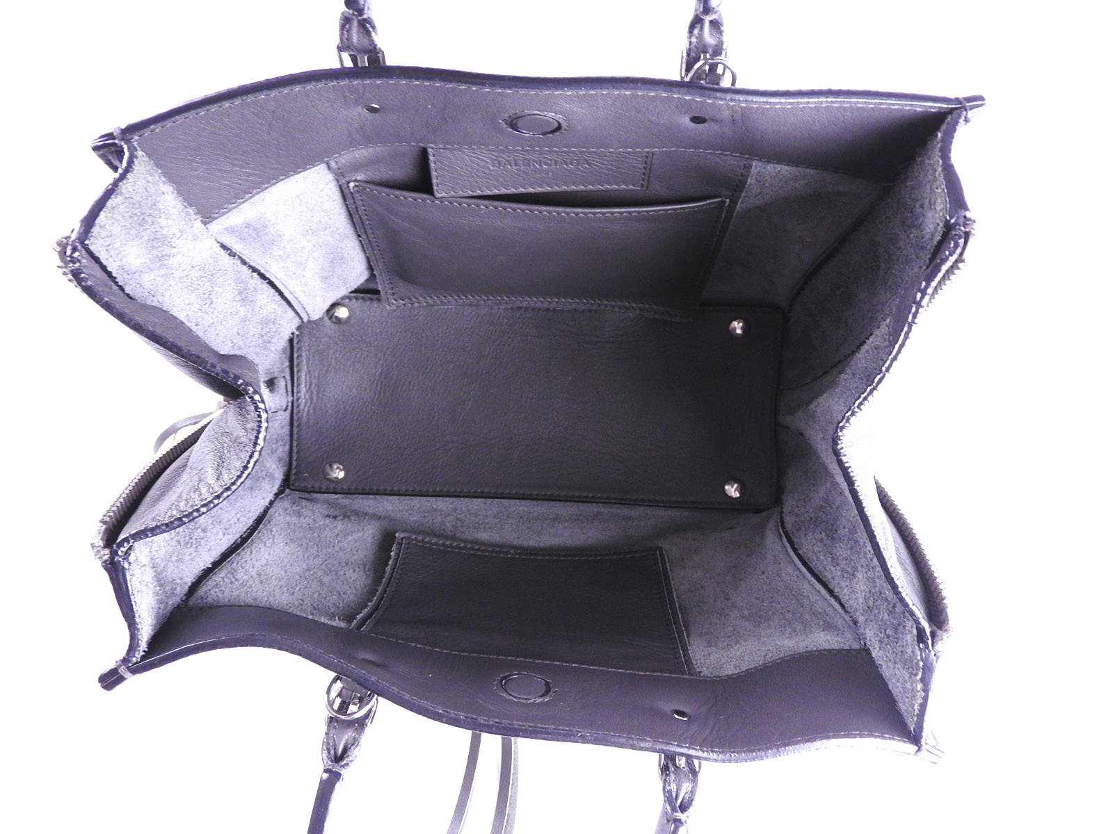 Auth BALENCIAGA Paper A6 Zip Around 2way Shoulder Hand Bag Calf Leather Black Silver Hardware with Mirror 370926 A-7955
