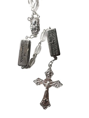 Crystal Clear white Catholic Mystery beads Rosary 7mm Molded Crystal beads . The Rosary Mysteries are engraved on the divider bars