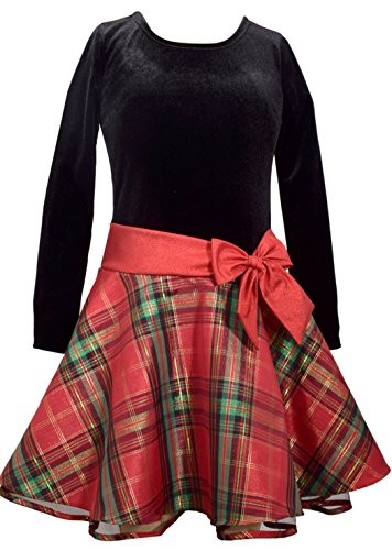 Long sleeve stretch velvet to plaid taffeta dress with crinoline. Bonnie Jean dress has made fashionable, high quality, affordable and age appropriate dresses and playwear sets since 1935.Feature