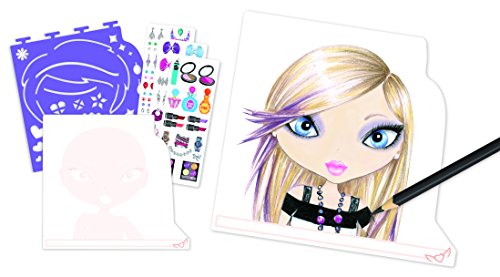 Spiral bound sketch portfolio with plastic cover.-40 Hair and make-up design sketch pages featuring 5 different page styles. Includes: -Includes color guide and instructions. Specifications: -7 Removable plastic stencil sheets with 100+ stencil designs. This sketch pad lets you draw make-up looks, hairstyles and nail designs on the Fashion Angels models. It comes with removable, plastic stencil cards with 100+ hair, make-up and accessory shapes to help create your designs on the formatted drawing sheets. The spiral bound book is great for on the go. Includes 40 formatted drawing pages, 7 plastic stencils sheets and over 100 shapes.Feature