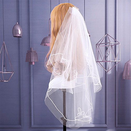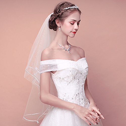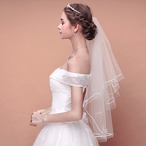 Binding : Apparel Product Description Wedding is a big event in life. For a bride-to-be, it is very important to choose a dress that suits you well. in addition to choosing a suitable wedding dress for yourself, a proper headdress will add beauty to your overall look. Picture yourself walking down the aisle dressed to the nines in your wedding outfit that took months of planning to complete. what a exciting thing to experience a wedding ceremony that you will remember for the rest of your life. This white beautiful wedding veil suits all brides well. The veil is easy to attach to the hair, you can tie it with hair band in hair bun. You will look Perfect on the biggest day of your life. Note: If the wedding veil looks a little crinkled, please rinse with water and hang up to dry. Or iron out on low heat. 0