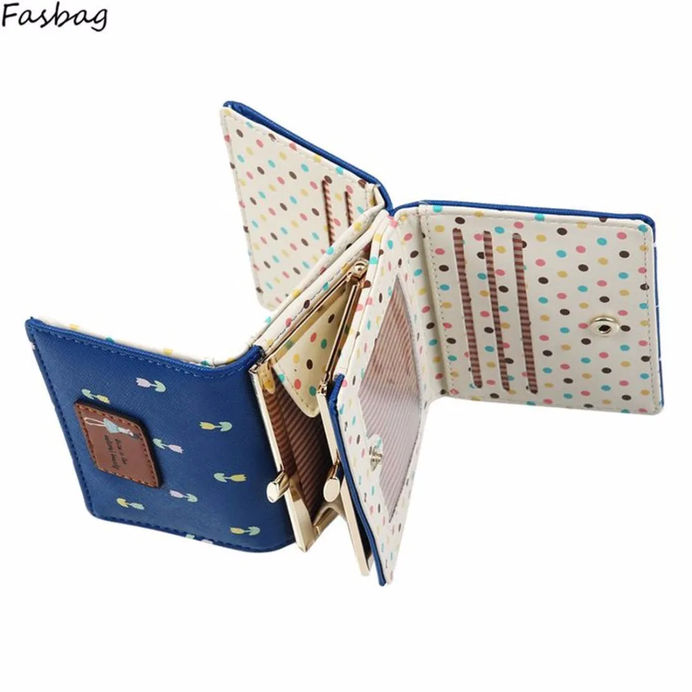 2015 Lady Short Coin pouch Women wallets New Kawaii Girl Small Change purse Coin bag Embossed 3 Folds Pu leather coin purses