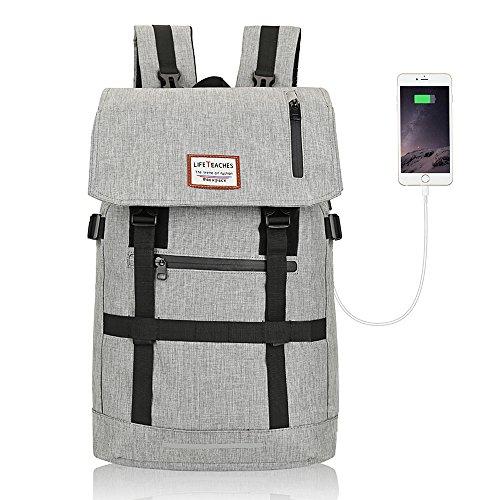 -. Feature : USB CHARGING PORT: External USB with built-in charging cable. You can easily and conveniently charge your phone, tablet and other devices without opening up the backpack. Putting your Power Bank into backpack and connect internal USB cable, then let your charging cable insert external USB port to connect your electronic device. / CREATIVE DESIGN: LIGHT REFLECTION STRIPS, Keep you safe when ridding or walking at night. The adjustable strap and velcro can expand the pack and INCREASE the main compartment capacity by 10 liters. Capacity: 25-35 L. 12.21" x 5.91" x 24.41". With dedicated Laptop compartment holds laptops up to 17 Inch. / EXTREMELY LARGE CAPACITY :The rucksack backpack's main compartment is very roomy for books, clothes. 1 Shockproof laptop compartment, 1 Padded iPad Pocket, 3 Inner pockets provide organizational compartments for your Phone, kindle, pens. 3 outside zipper pockets, 1 Side pocket is suitable for watter bottle, umbrella. The Anti-Theft zipperd and invisible pockets keep your valuables safe and handy. 2 Card pockets on straps. / HiGH QUALITY & DURABLE MATERIAL: Water Resistant, Anti-Scratch, Anti-Theft. AIRFLOW BACK & shoulder straps system, sturdy adjustable shoulder straps. Ergonomic design offer maximum back support and comfort.The heavily padded shoulder straps and wide, adjustable chest straps make the backpack comfortable on the go. / MULTIPURPOSE USAGE & CASUAL STYLE. The backpack can fit your many occasions. It also fit men and women. Perfect for school, college, hiking, outdoor holiday, cycling, traveling, etc. 6-MONTH WARRANTY and friendly, easy-to-reach customer service. If you have any question for the item, please feel free to contact us.