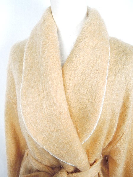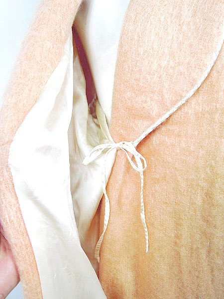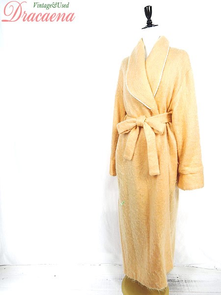 Ladies ブランド- カラーコーラルピンク メール便不可 コンディション★★★ 素材モヘア90%・ナイロン10%/裏地・シルク100% 表記サイズM スタッフコメント右足、太もも付近に薄いヨゴレあり。裏地付き、共布付き。 実寸サイズ 着丈 140 cm 身幅 60 cm 肩幅 50 cm 袖丈 59 cm ※ウエスト・ヒップ以外は平置き採寸
