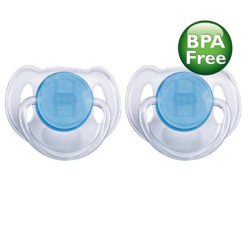 -. Binding : Baby Product -. Brand : Philips AVENT -. Color : Blue -. EAN : 0845070742173 -. Feature : Orthodontic symmetrical collapsible nipple so right side up or upside down, philips avent pacifiers help ensure natural development of teeth and gums / Taste and odor-free silicone nipple makes for an easy transition between pacifier, breast and bottle / Includes two pacifiers, ideal age range: 6-18 months / WARNING: Do not tie pacifier around child's neck as it presents a strangulation danger -. Label : Philips Avent -. Manufacturer : Philips Avent -. MPN : 4327990749 -. PartNumber : 4327990749 -. ProductGroup : Baby Product -. ProductTypeName : BABY_PRODUCT -. Publisher : Philips Avent -. Studio : Philips Avent -. Title : Philips AVENT BPA Free Translucent Pacifier 2 Pack, Blue -. UPC : 845070742173