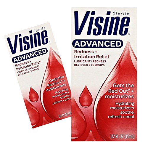 -. Binding : Health and Beauty -. Feature : Visine Advanced Redness + Irritation Relief / Lubricant/Redness Reliever Eye Drops. / UPC: 074300008486 / Pack of 3 x 0.5 Fl Oz / Made In Belgium -. IsAdultProduct : 0 -. Label : Visine -. Manufacturer : Visine -. ProductGroup : Health and Beauty -. ProductTypeName : HEALTH_PERSONAL_CARE -. Publisher : Visine -. Studio : Visine -. Title : (3 Pack) Visine Advanced, Redness Relief, Irritation Eye Drops Lubricant, 0.5 fl oz ea.