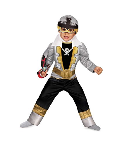 -. Brand : Disguise -. Color : Silver -. Department : baby-boys -. Feature : Includes a silver, black and gold power ranger jumpsuit with padding in the torso and in the arms, an attached matching belt with a soft buckle, and a soft silver ranger headpiece. / No accessories are included. / Toddler 2T, Toddler 3T/4T, and Small 4/6 / Available in: Toddler 2T, Toddler 3T/4T, and Small 4/6. / Includes padded jumpsuit and soft mask. -. ProductGroup : Apparel -. ProductTypeName : BABY_COSTUME -. Title : Special Silver Ranger Super Megaforce Toddler/ Boys Muscle Costume