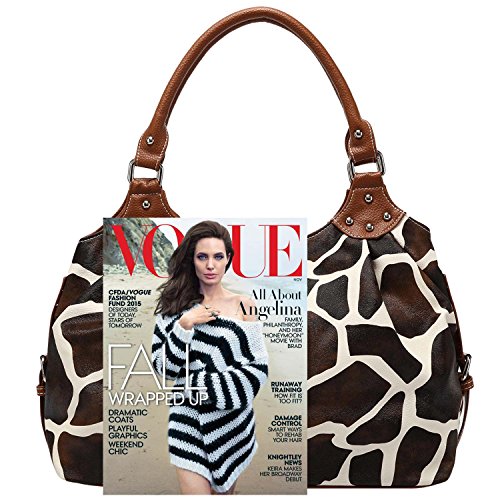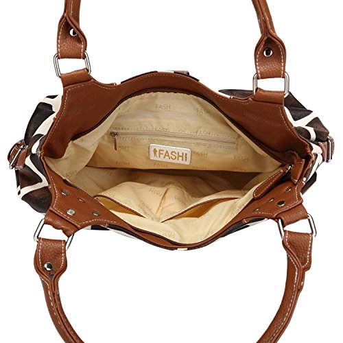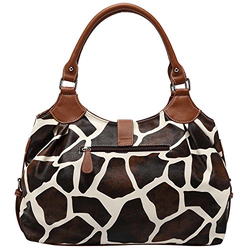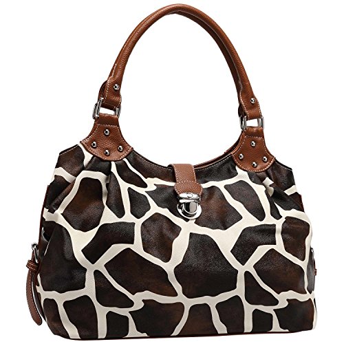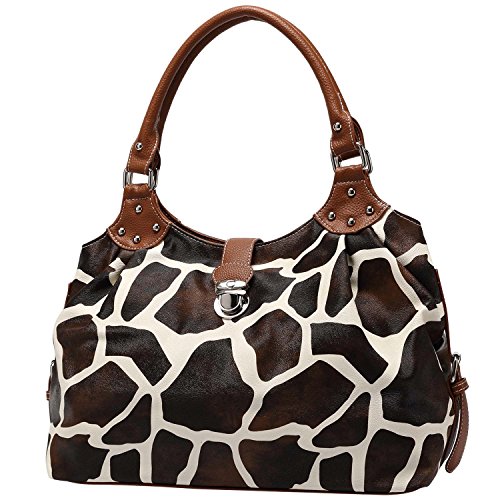FASH Giraffe Print Satchel Style Top Handle Handbag,Brown,One Size