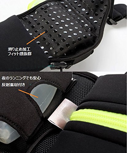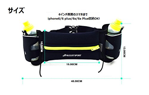 -. Feature : サイズ:横48cm×縦13cm 重量:210g メイン素材:ナイロン / ウォーターボトル2本付き。容量:150ml/本 合計300ml / ポケット数:1個(内層ポケット2個付き)。6インチ画面までの携帯&スマホ、小銭、カー鍵、カードなどいろいろ収納可 / 特徴:①ボトル左右各1個装備。軽量化設計、短~中距離ランニングの水補給に最適。②大きいポケット付き。携帯/スマホはもちろん、小銭、カギ、カードなどいろいろ収納可 / ④伸縮性のゴムベルト、滑り止め加工、調整自由、フィット感抜群⑤反射材付き、夜のランニングでも安心⑥ピン止めより安全なナンバーカード付け