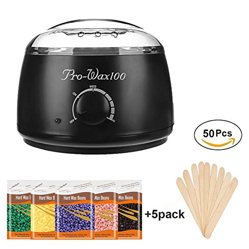 Waxing Kit,Wax Warmer Hair Removal Kit,Wax Heater Pot Skin Care with 5 Packs Wax Beans and 50pcs Wax Applicator Sticks for Facial,Feet,Hands,Armpit by...