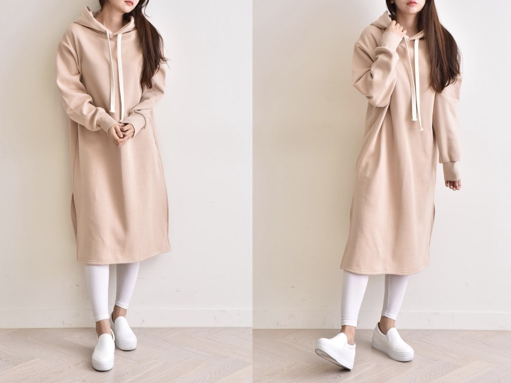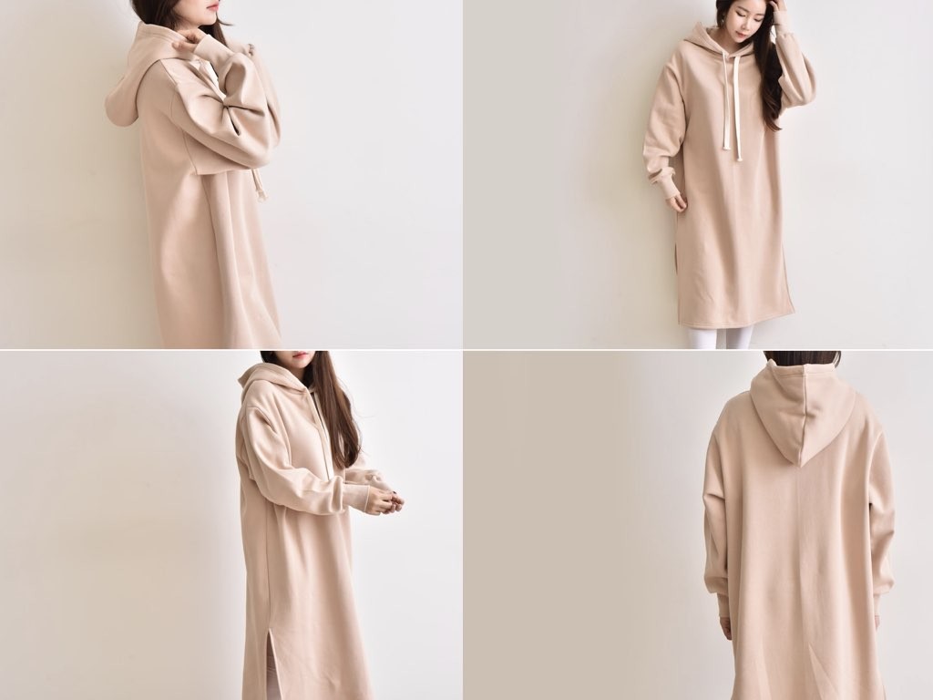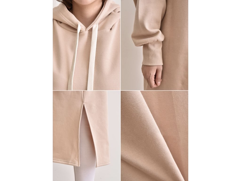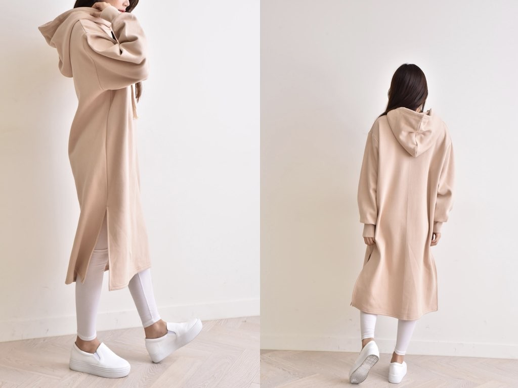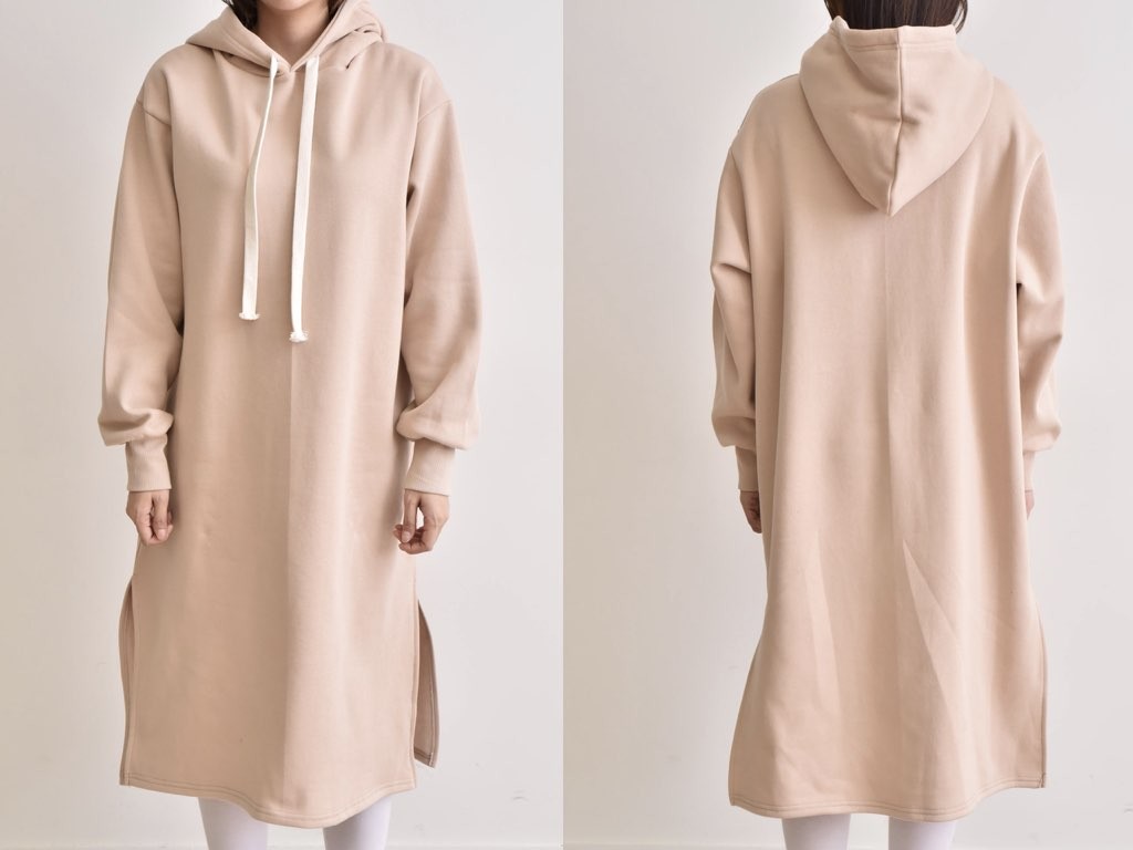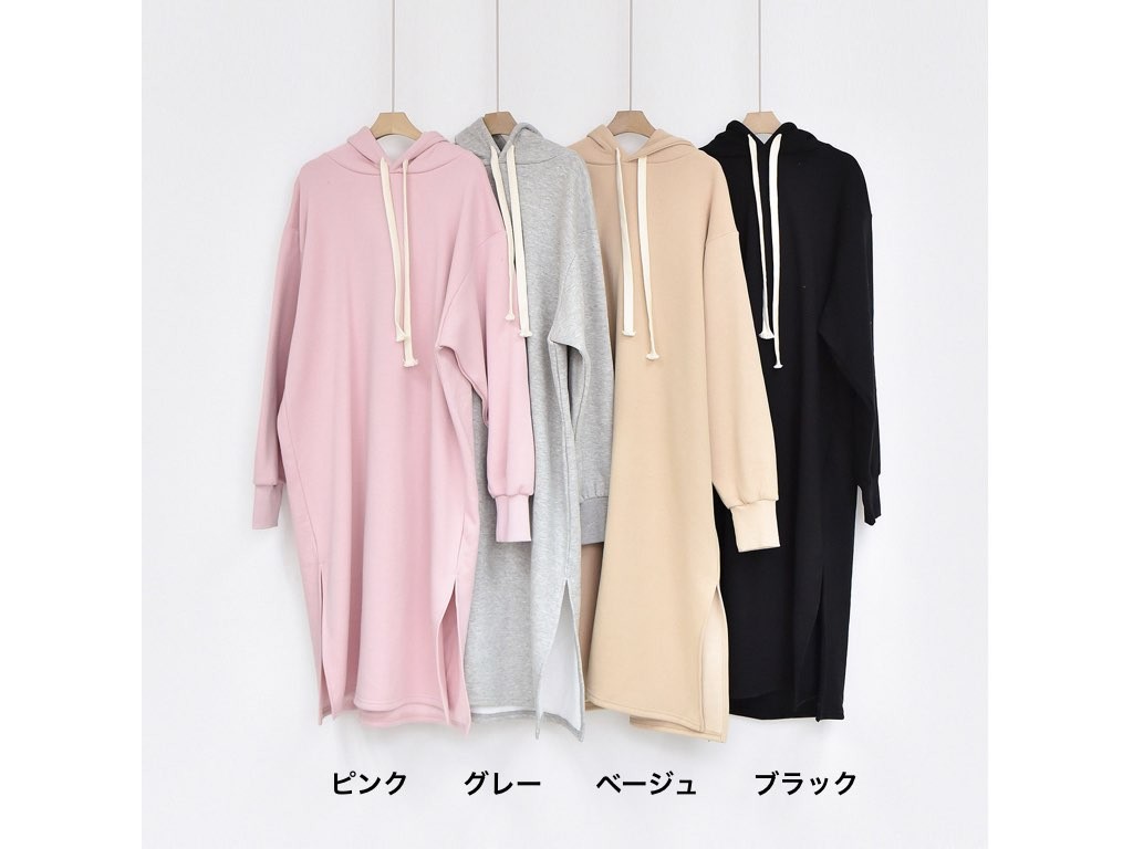 フード付きの裏起毛・マキシワンピースです。防寒対策、オシャレ対策にバッチリな、裏起毛のマキシワンピースです。やみつきになりそうな肌触りと暖かさを兼ね備えており、これからの季節に最適なアイテムですね。1.基本情報色:ブラック・ベージュ・グレー・ピンクサイズ:Free素材:綿製造国:Korea2.サイズ情報肩幅:54cm 身幅(胸断面):61cm 腕の長さ:58cm 着丈:108cm(サイズは計る方法に応じて±2〜3cmの誤差があります。ご了承お願い致します)モデル着用サイズ:F※着用モデル(163cm、体重47kg、足のサイズ245mm)3.その他の情報厚み:中間透け感:なし伸縮性:中間裏地:有り(起毛)洗濯方法:洗濯[注意事項]お取り寄せ商品は、海外より仕入れるため納品まで約10日前後いただきます。また店舗でも販売しており、在庫切れになる場合もございます。ご了承お願い致します。